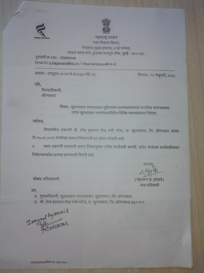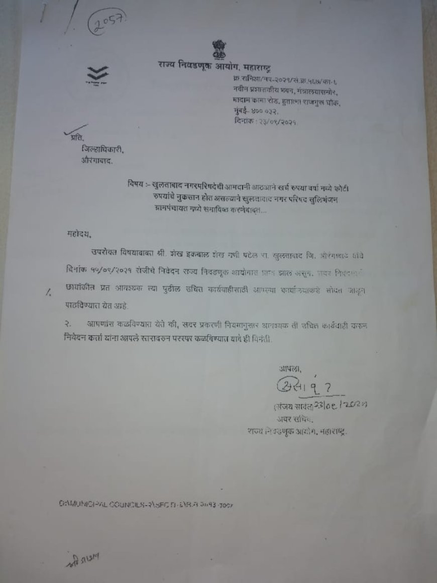 नगर परिषद या ग्राम पंचायत? खुलताबाद में फिर छिड़ी बहस जिलाधिकारी के खिलाफ न्यायालय जाने की तैयारी में समाजसेवी इकबाल पटेल खुलताबाद | 14 अक्टूबर | प्रतिनिधि खुलताबाद नगर परिषद की आर्थिक स्थिति लगातार बिगड़ती जा रही है। आय बेहद सीमित और खर्चे कई गुना अधिक होने से हर वर्ष सरकार को करोड़ों रुपये का घाटा झेलना पड़ता है। इसी पृष्ठभूमि में एक बार फिर खुलताबाद नगर परिषद को भंग कर सुलिभंजन ग्राम पंचायत में विलय करने की मांग ने जोर पकड़ा है। इस विषय को लेकर स्थानीय समाजसेवी इकबाल पटेल ने पहले ही 15 सितंबर 2021 को राज्य के मुख्य सचिव और राज्य चुनाव आयोग को पत्र भेजकर नगर परिषद के ग्राम पंचायत में विलय की मांग की थी। उनका कहना है कि नगर परिषद के पास कोई ठोस आय स्रोत नहीं है, जबकि खर्चों का बोझ लगातार बढ़ता जा रहा है। पत्र में यह भी उल्लेख किया गया था कि नगर परिषद की कुल जनसंख्या 15,749 होने के बावजूद, विकास निधि का बड़ा हिस्सा राजनीतिक खींचतान और ठेका विवादों में उलझ जाता है। नगराध्यक्ष, उपनगराध्यक्ष और नगरसेवकों के बीच हिस्सेदारी के विवाद के चलते अधिकांश योजनाएँ अधूरी पड़ी हैं। भौगोलिक दृष्टि से भी नगर परिषद की स्थिति सीमित आय वाली बताई जाती है — उत्तर में सुलिभंजन ग्राम पंचायत, दक्षिण में म्हैसमाल रोड और दरगाह कब्रिस्तान, पश्चिम में एलोरा घाट का वन विभाग क्षेत्र तथा पूर्व में कृषि भूमि होने से कोई नया राजस्व स्रोत विकसित नहीं हो पा रहा है। नगर परिषद में इस समय करीब 50 कर्मचारी कार्यरत हैं, जिनमें से आधे सफाई और आधे जलापूर्ति से जुड़े हैं। बावजूद इसके नागरिकों को नियमित स्वच्छता और पानी की आपूर्ति जैसी मूलभूत सुविधाओं के लिए परेशान होना पड़ रहा है। केवल कर्मचारियों और अधिकारियों के वेतन पर ही सरकार को हर माह लाखों रुपये का खर्च वहन करना पड़ता है। इकबाल पटेल का कहना है कि यदि खुलताबाद नगर परिषद को सुलिभंजन ग्राम पंचायत (जनसंख्या लगभग 2,200) में विलय किया जाए, तो शासन को बड़ी आर्थिक बचत होगी और प्रशासनिक कार्य अधिक प्रभावी ढंग से संचालित किए जा सकेंगे। सूत्रों के अनुसार, इस मुद्दे पर राज्य चुनाव आयोग ने 18 फरवरी 2022 को तत्कालीन जिलाधिकारी आस्तिक कुमार पांडे को नियमानुसार कार्रवाई के निर्देश भी दिए थे, लेकिन आज तक कोई ठोस निर्णय नहीं लिया गया है। अब इकबाल पटेल ने घोषणा की है कि वे नगर परिषद चुनाव समाप्त होते ही जिलाधिकारी के खिलाफ न्यायालय में याचिका दायर करेंगे। उनका कहना है— जब नगर परिषद जनता पर बोझ बन चुकी है और विकास कार्य ठप हैं, तो उसे ग्राम पंचायत में मिलाना ही जनता और शासन दोनों के हित में है। ज्ञात हो कि 2022 में नगर परिषद के आरक्षण की प्रक्रिया शुरू की गई थी, लेकिन सुप्रीम कोर्ट के आदेश के बाद उसे 